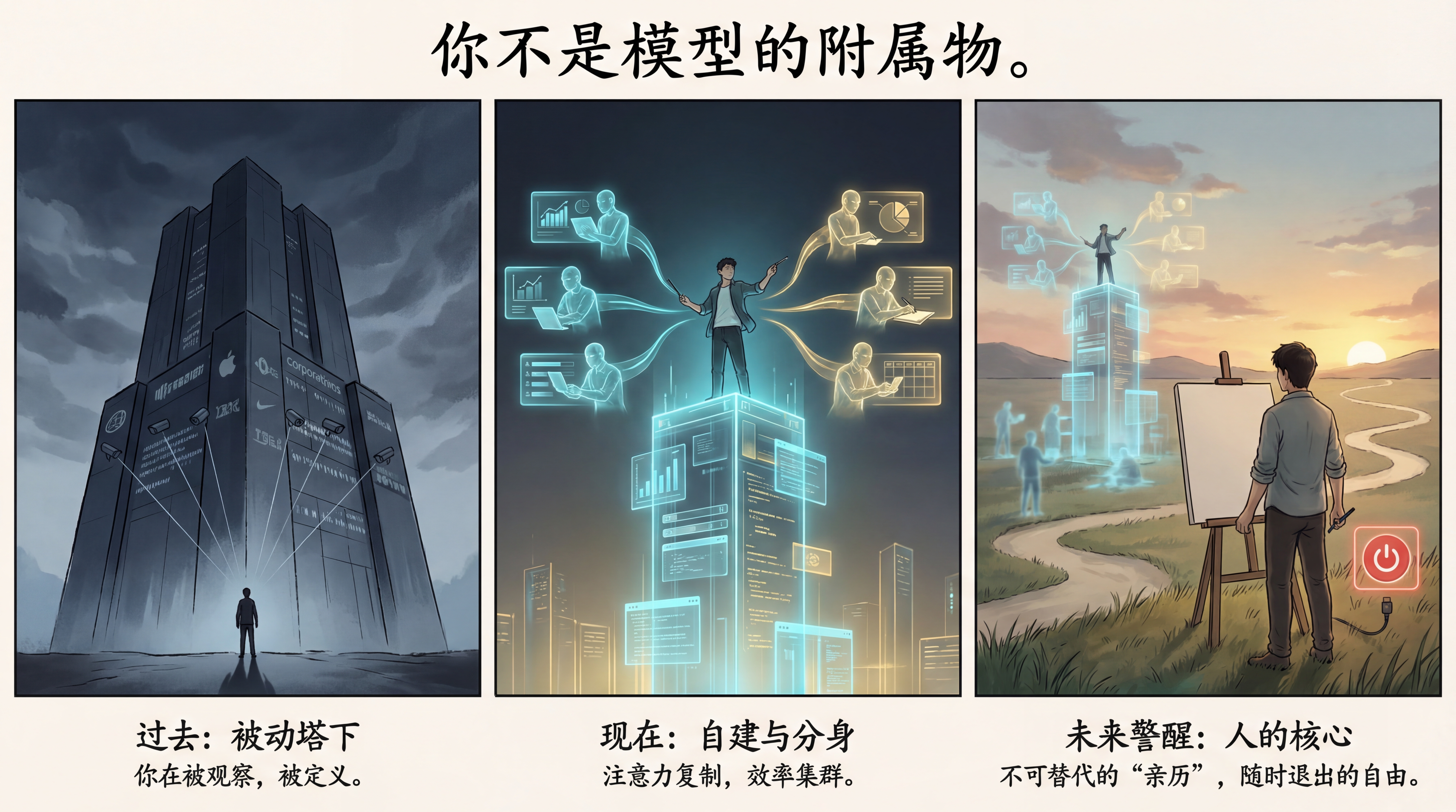 过去,只有企业和平台能建造观察你的塔。它们用算法解读你的行为,用模型预测你的选择,用推荐系统引导你的注意力。你是被观察者,永远站在塔下。