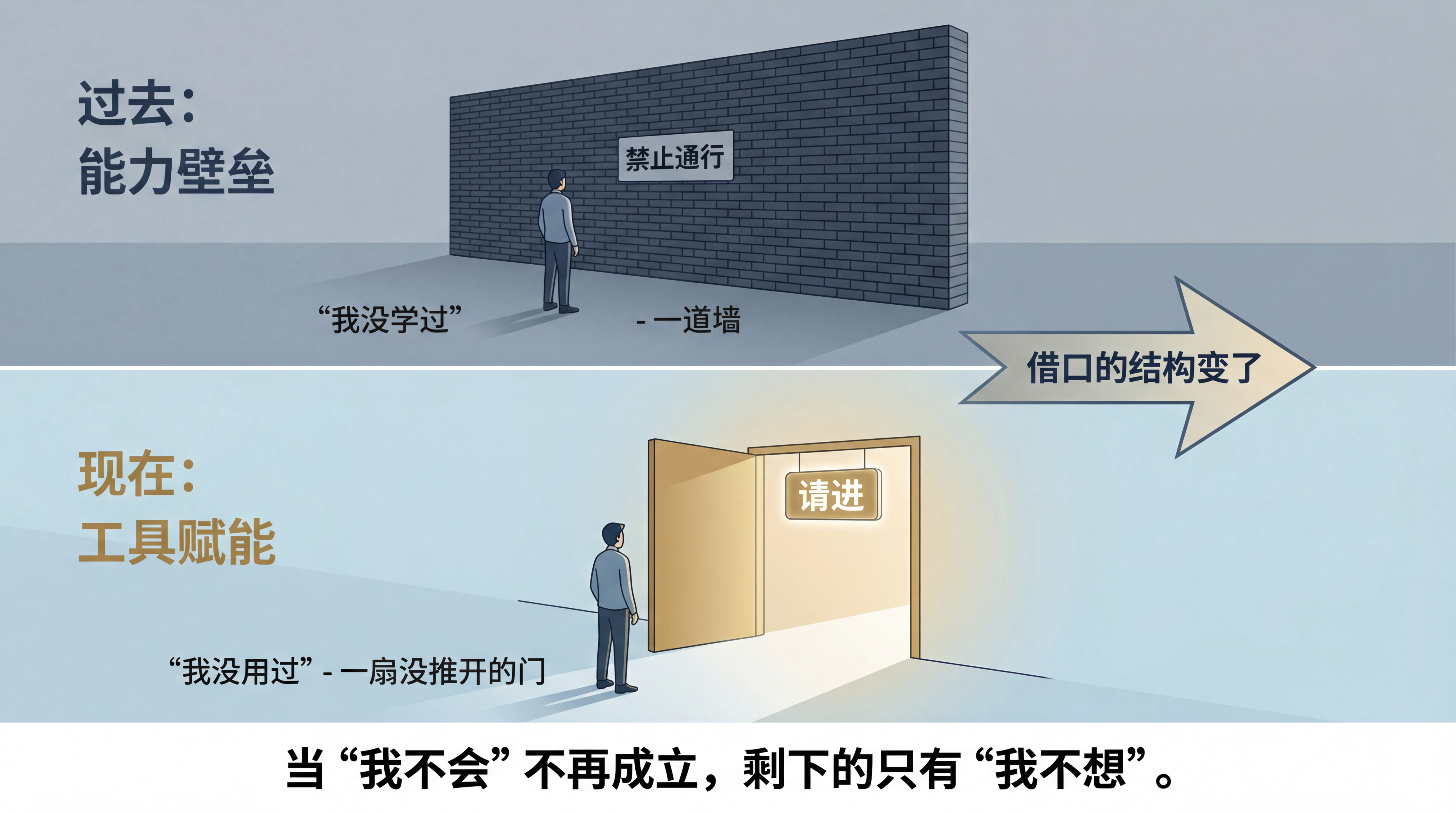 当能力不再是瓶颈,“我不行”的解释就失效了。