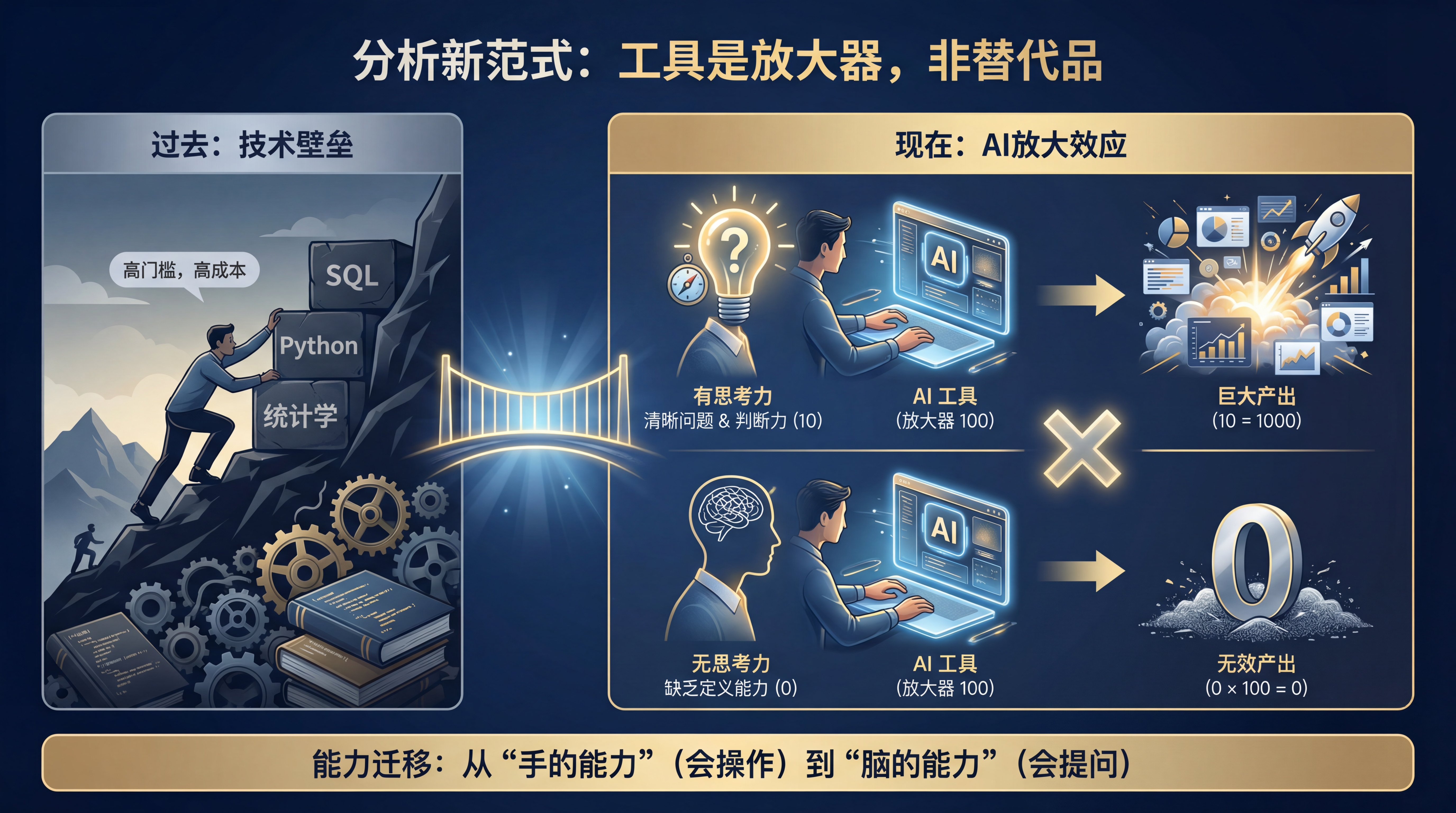 如果你有清晰的问题意识、对领域的深刻理解、对结果的判断力——工具会成倍放大你的产出。但如果你不知道自己要什么,工具只会更快地帮你抵达一个错误的答案。