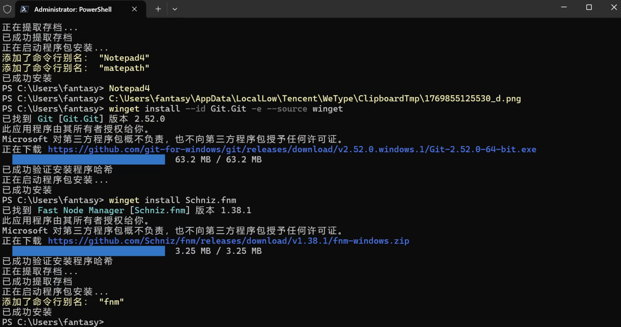 安装成功后同样关闭全部窗口,重新打开一个终端 Shell,继续安装 Node: