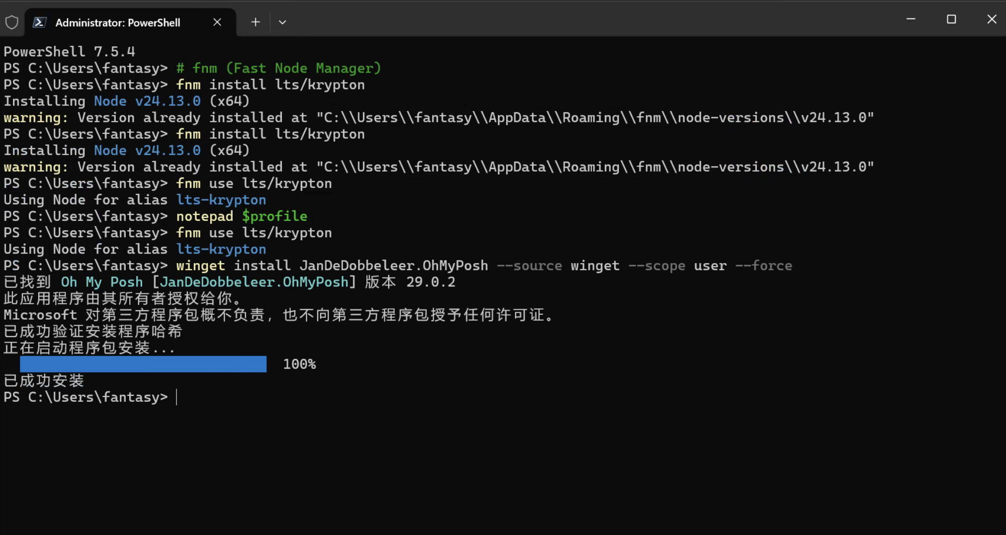 winget install JanDeDobbeleer.OhMyPosh --source winget --scope user --force
