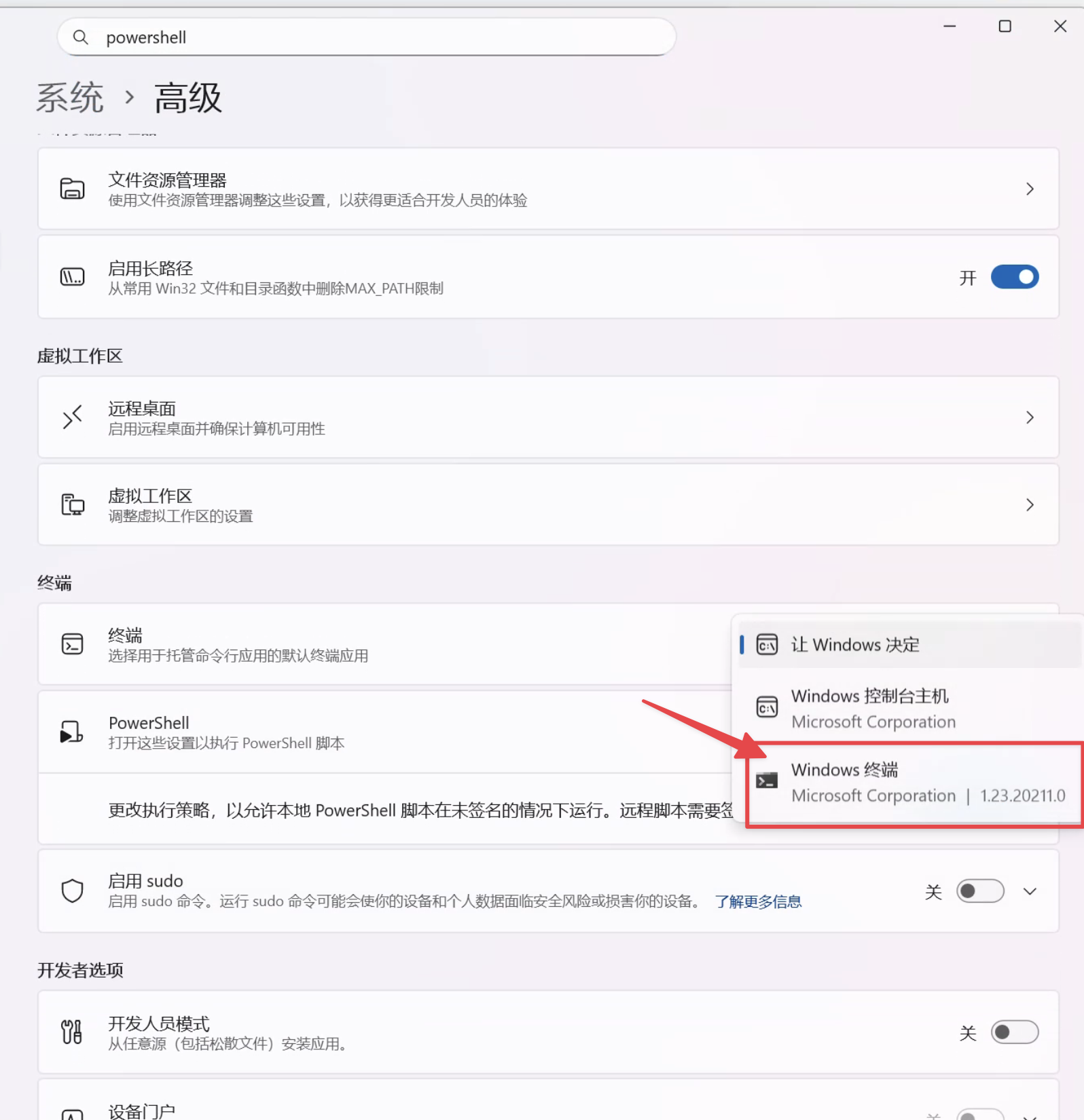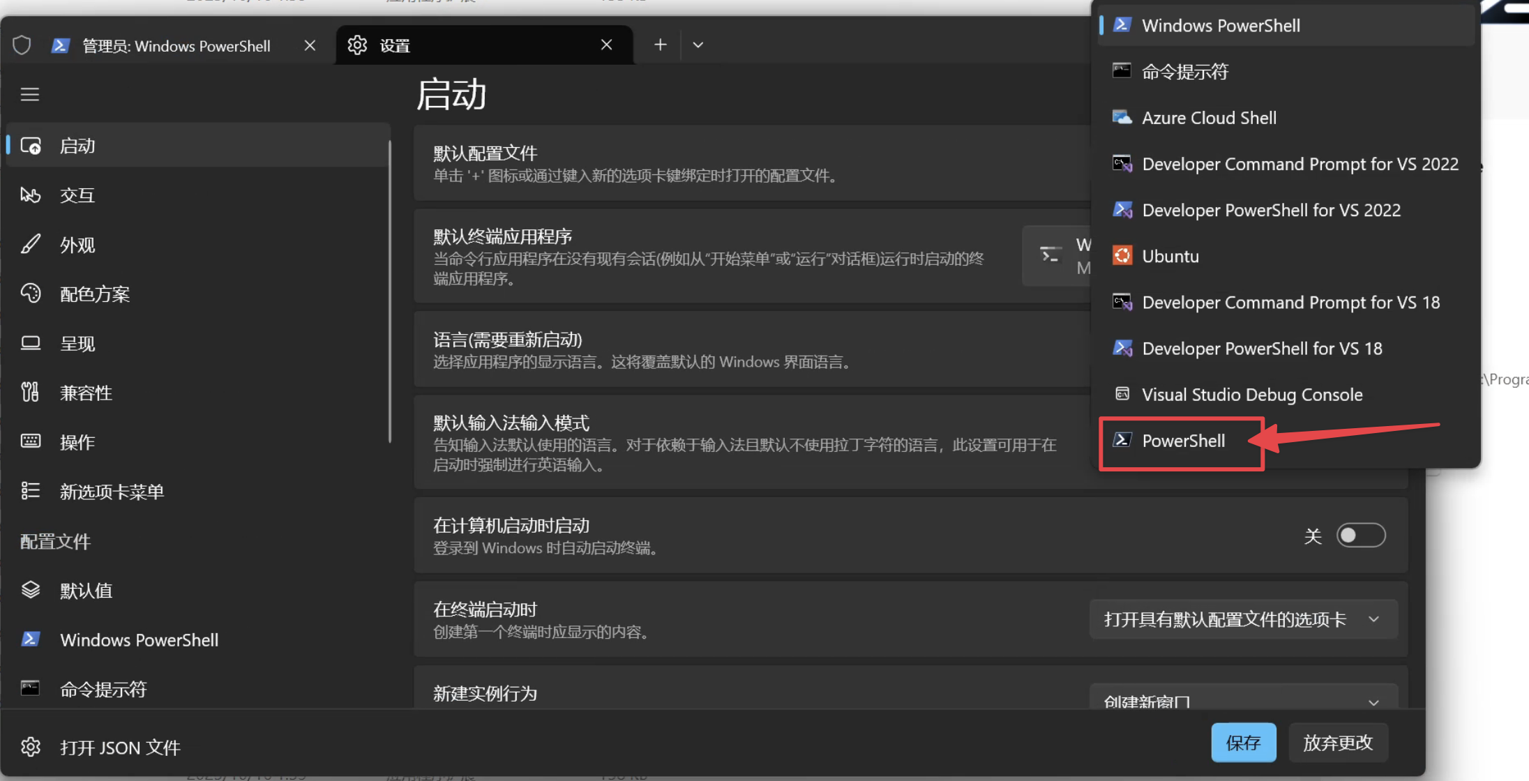 切换默认为我们刚安装的 PowerShell: