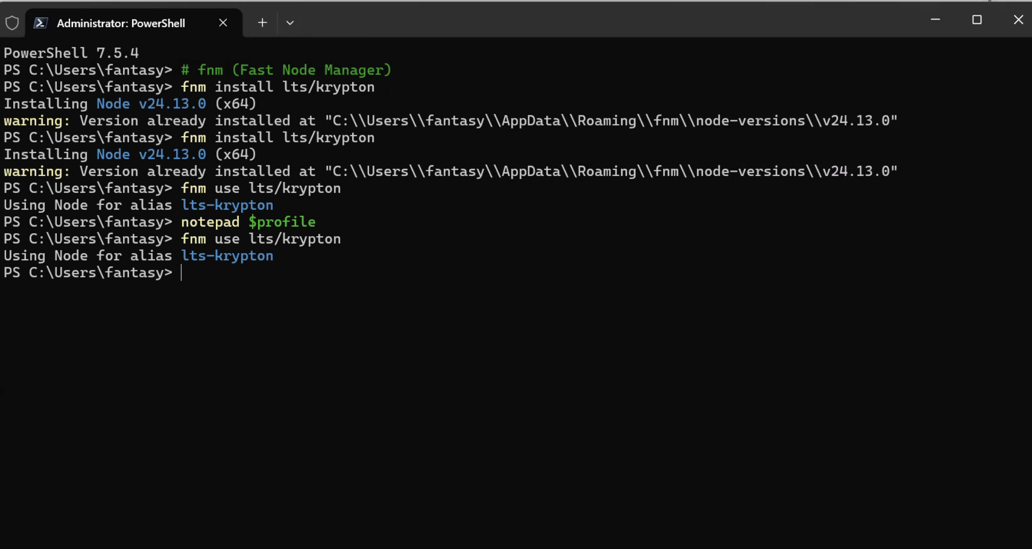 fnm install lts/krypton